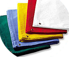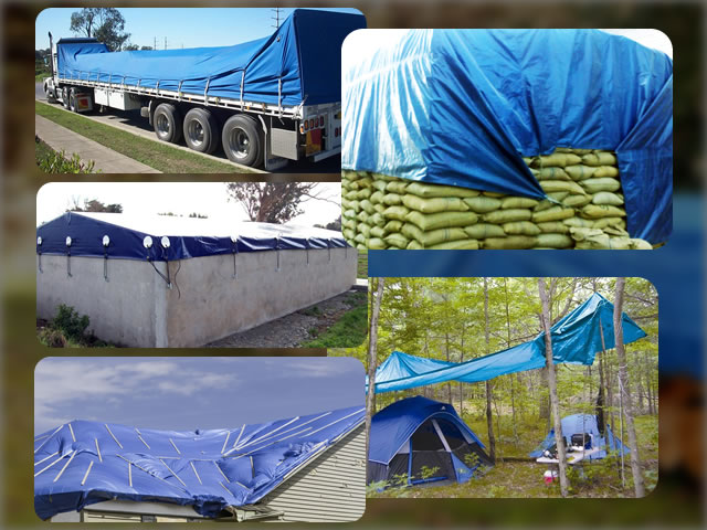These large sheets have grommets or reinforced holes at the corners and along the edges at regular intervals which are used to pass nylon ropes through them so that they can be tied to an anchor. The main use of tarpaulins is to provide shelter from rains and in some cases, even from sun and winds.